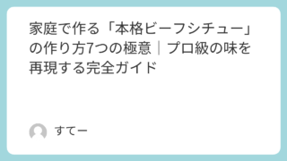 生活 家庭で作る「本格ビーフシチュー」の作り方7つの極意|プロ級の味を再現する完全ガイド 「お店みたいな本格ビーフシチューを家で作れたら…」そう思ったことはありませんか。実は、家庭のキッチンでも少しの工夫と正しい手順を押さえれば、驚くほど深みのある味に仕上げることができます。この記事では、牛肉の選び方から火加減、ソース作り、アレ... 生活