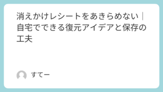 生活 消えかけレシートをあきらめない|自宅でできる復元アイデアと保存の工夫 レシートの文字が薄くなっていて、焦った経験はありませんか。あとで必要になるかもしれないと思うと、不安になりますよね。でも、レシートは扱い方次第で読みやすさを保つことができます。この記事では、消えかけたレシートへの対処と、長く残すための工夫を... 生活