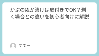 生活 かぶのぬか漬けは皮付きでOK?剥く場合との違いを初心者向けに解説 かぶのぬか漬けを作ろうと思ったとき、まず迷いやすいのが皮をどうするかという点です。皮は剥いたほうがいいのか、それともそのままでいいのか、判断に困る方は多いと思います。初めてぬか漬けに挑戦する場合は、失敗しないか心配になりますよね。この記事で... 生活