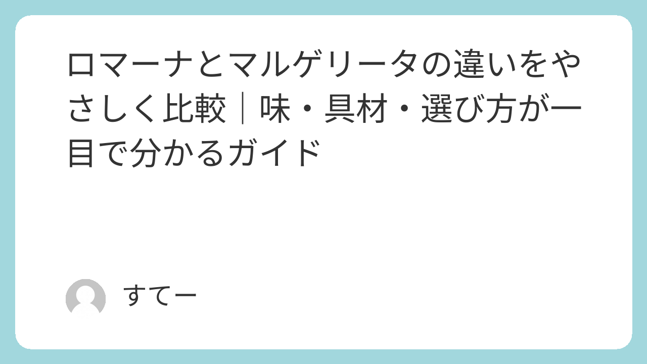 ロマーナとマルゲリータの違いをやさしく比較|味・具材・選び方が一目で分かるガイド