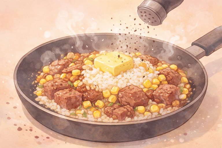 いちばん手軽なのは、甘めの焼肉ダレにバターと黒コショウを合わせる方法です。