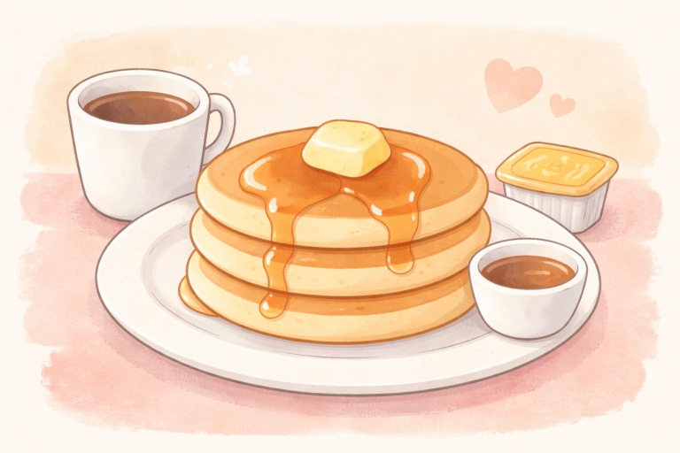 軽めで甘い朝食を求めるなら、ホットケーキは相性が良いです。