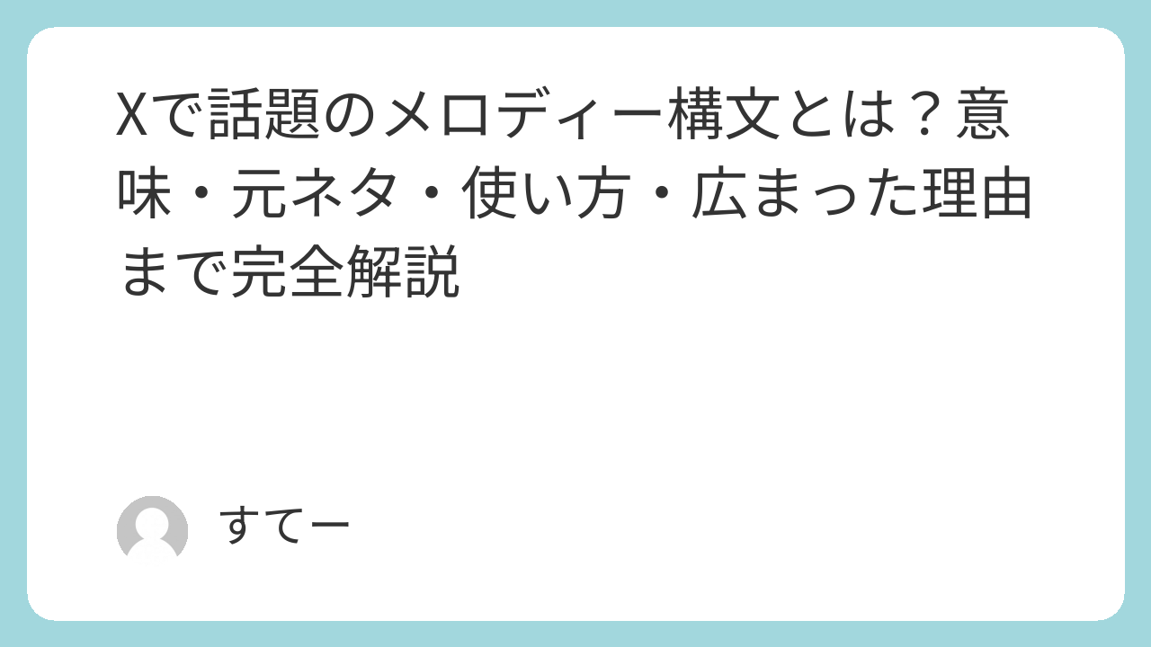 この記事では、メロディー構文の意味や元ネタ、広まった理由までやさしく解説します。