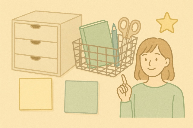 また、使用頻度の低い文房具は引き出しや収納棚にまとめ、よく使うものは手に取りやすい位置に置くと効率的です。