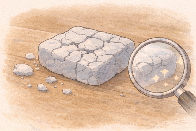 押した瞬間にポロッと欠けたり、細かい粒状に崩れてしまう場合は、内部の水分と柔軟成分が大きく失われている状態です。