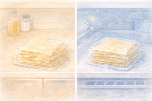 特に解凍時に表面がパリッと割れることがあるため、一枚ずつフィルムを挟んだり、小分けで冷凍したりすると品質を保ちやすくなります。