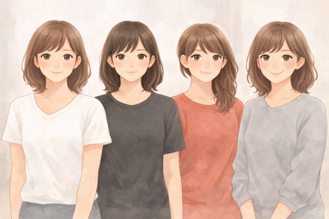 明るさや影の出方は服の色によって大きく変わるため、実は色選びがいちばんの近道です。
