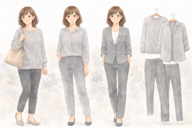 女性向け|やわらかく映るグレーコーデ例