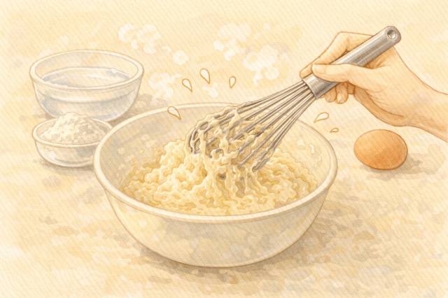 混ぜすぎると粘りが出て、サクッとした食感が出にくくなることもあります。