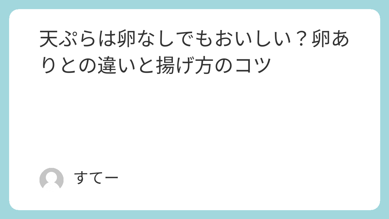 でも実は、天ぷらは卵なしでも十分おいしく仕上げることができます。