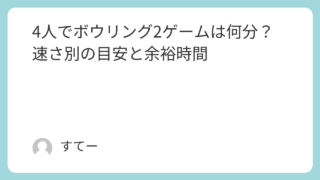生活 4人でボウリング2ゲームは何分?速さ別の目安と余裕時間 4人でボウリングを2ゲームすると、どれくらい時間がかかるのか気になりますよね。初めて行くメンバーがいると、なおさら時間の感覚がつかみにくいと思います。予定が詰まっている日や、次の約束がある日は特に心配になりやすいですよね。実際には、投げるペ... 生活