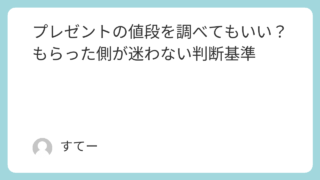 生活 プレゼントの値段を調べてもいい?もらった側が迷わない判断基準 プレゼントをもらったとき、「これっていくらくらいなんだろう」と気になった経験はありませんか。興味本位でも、調べていいのか迷ってしまう方はとても多いと思います。この記事では、プレゼントをもらった側が値段を調べてもよいのかどうかを、やさしく整理... 生活
